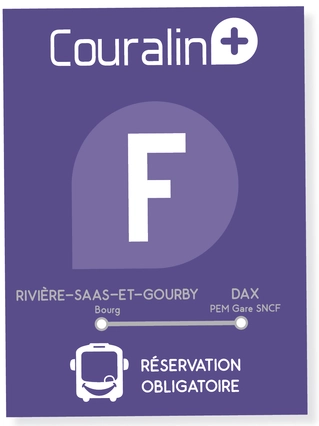 La ligne F Couralin+ propose 3 allers-retours quotidiens, du lundi au samedi toute l’année (sauf jours fériés). L’itinéraire de la ligne F Couralin+ passe par les communes de Rivière-Saas-et-Gourby, Angoumé, Mées et Dax.